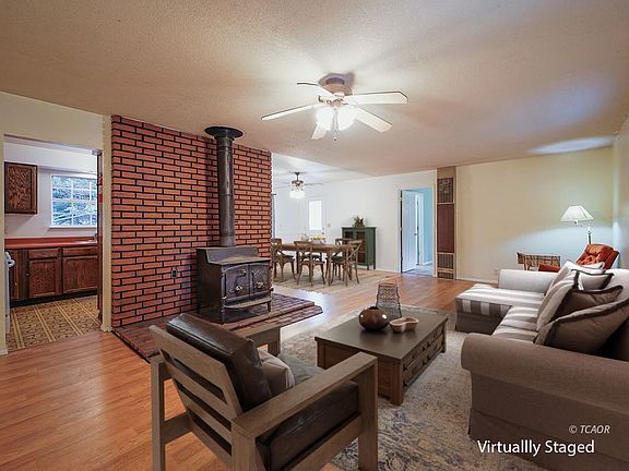 A Comfortable Country Escape. Enjoy year-round living w/ 2 versatile bonus spaces: a 19' x 10' screened-in porch off the large covered main entry porch, AND a Multi-purpose room ideal for a home office, a side-entry storage, & a full-size laundry. Step indoors to an inviting L-shaped Living / Dining Area. A wood stove is set on an upgraded brick hearth, adding warmth & appeal while complementing the upgraded laminate flooring (throughout living, dining, & bedrooms). Comfort in every season w/ dual-pane windows & generous eave overhangs that help maintain indoor temps year-round. A well-appointed kitchen w/a new dishwasher (range & refrigerator included in the sale). The primary bdrm offers 2 wall-to-wall closets, one on each side of the room. The 2nd bdrm enjoys a full wall-to-wall closet. The side-entry hall provides a perfect drop zone for coats, shoes. An attached 2 car garage, offers room for vehicles, storage, & workbench. These thoughtful features create a comfortable & flexible floor plan perfect for work, relaxation, and entertaining. The location offers exceptional convenience for commuting, shopping, dining, & abundant recreation opportunities. All within a comfortable drive, along majestic scenery.