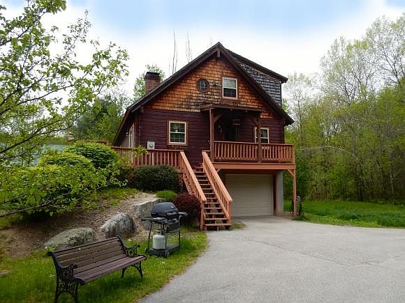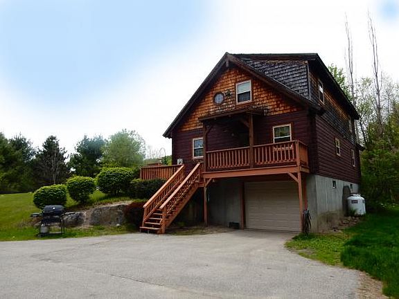 This beautiful home nestled into a little pocket of woods just off from the main St. It is close to downtown and all that Antrim has to offer. This charming home is set back from the road behind secluding pine trees, giving it great privacy from the road. The first floor features an open concept kitchen and living room as well as two bedrooms and a full bath. The living room features a wood stove and sliding glass doors that overlook the yard and deck. The second floor features the master bedroom, another full bathroom, a walkway overlooking the living room and an office as well as a dedicated laundry room. The drive in garage under the house is large enough for 1 car as well as a small workshop and plenty of room for gardening or lawn maintenance equipment. The property also includes a large shed.
