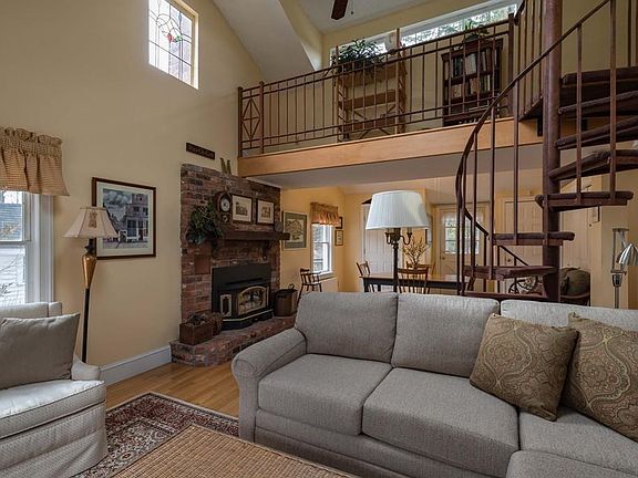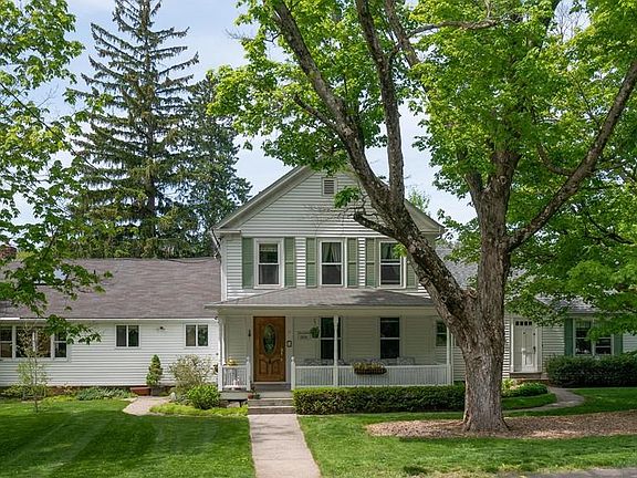 Enjoy the pastoral setting, wildlife, lovely plantings and seasonal brook with foot bridges from the porch, deck and picture windows of this charming farmhouse.The original part of the house was built in the 1880's with a striking addition of kitchen and family room. With a total of 3 bedrooms and 2.5 baths, the house offers many original and charming features including hardwood floors and custom built-ins as well as modern conveniences. An airy and bright kitchen w/breakfast island and stone counters opens to a dramatic vaulted living and dining space with fireplace and spiral staircase. Formal parlor, dining room and cozy den round out this beauty.. The Separate in-law apartment for extended family or au pair feels like its own residence with a full kitchen, living room and bedroom above. State of the art heating system, a 3-bay barn w/concrete floor, potting shed and garage. Quiet country living just a short walk from restaurants, school, post office, bank and library.