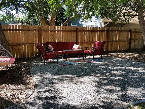 Beautiful 2 bed 1 bath house on a quiet cul-de-sac. Immediate access to Oligarchy Ditch Greenway, connecting you to Longmont's multi-use trail system. Only a five minute walk to Timberline PK-8 and Centennial Park. Kitchen features granite countertops, wood floor, under-mount stainless sink, black appliances, and new fixtures. Bathroom is tiled and naturally illuminated by skylight. Large master bedroom includes walk-in closet. Spacious front, side, and rear yards with sublime patio and sitting areas under fruit trees. Gardeners will enjoy two raised beds and room for more if desired. One-car garage is extra deep, affording ample workshop space even with car inside. All appliances are included, as well as washer/dryer if desired. "Charter Member" status of NextLight fiber internet will pass to new owner for lower monthly rate. Home has been meticulously maintained and has a new roof. All lights are fitted with energy-efficient bulbs for lower electric bills, new front door installed to minimize drafts/infiltration in winter months. Evaporative cooler keeps things comfortable in summer. Seller to pay buyer's agent's commission at negotiable rate.