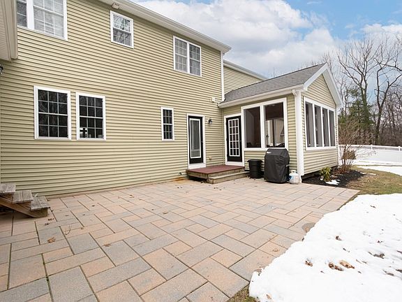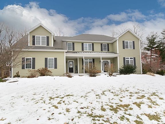 Don’t miss this opportunity to own this impressive Wagner Meadows colonial that is a perfectly sited property at the end of a desirable cul-de-sac. The main entry opens to a bright and spacious two-story foyer. Open concept, eat-in kitchen with granite counters, upgraded cherry cabinets, and a 9' island. French pocket doors separate the cozy living room which offers sliders to the patio and a brick fireplace with a pellet stove. Formal dining room with marble wood-burning fireplace. A walk-in pantry, double closets in the mudroom and kitchen, a large screened-in porch, and an office or study. Upstairs has 4 spacious bedrooms including the primary ensuite and additional full bath, a 2nd-floor laundry room, and a 400+ sq. ft bonus / 5th bedroom with double closets. This home boasts beautiful solid wood doors, oversized windows, and decorative molding throughout. Plus, a 3 car garage, above-ground pool, and shed. Large unfinished basement is plumbed for additional bath. Not to be missed!