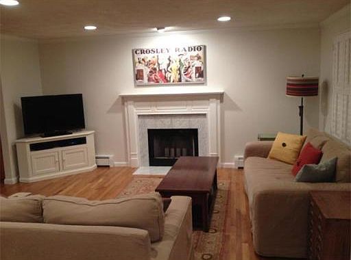 Sun filled, immaculate young colonial built in 1998. NO lead paint worries and many updated features including brand new silestone kitchen counters with extended peninsula for plenty of seating, new energy star stainless steel appliances & California closet pantry. With sparkling hardwood flooring, this home offers so many options for living.Spacious family room w/high ceilings, a wood burning fireplace, crown moldings, recessed lighting & classic plantation shutters. An adjacent dining room w/ plantation shutters flows from the kitchen w/walk out to deck & lovely landscaped yard. Additional living room on main level too! Three bedrooms including a master suite w/bath & walk in California closet plus office nook. Walk out basement has been recently finished & is terrific space for entertaining.Newer 2 zone heating system & exterior paint within the last few years & many new windows. This house is picture perfect and move in ready! Wonderful family neighborhood walk to schools & train