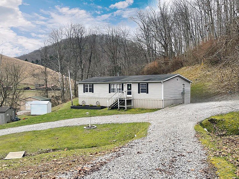 51 Raccoon Run, Normantown, WV - 75 acres +\- of beautiful land with a 3 bedrooms/2 bath 2005 doublewide, FREE GAS, small pond , detached garage (concrete floor and electric) and outbuildings/dog kennel. This country charmer offers privacy along a dead end road, yet conveniently located off a paved road for easy access. Property includes plenty of room for a garden, hobby farm and lots of woods for the hunter. Owner states marketable timber value too. Impressive features include Generac generator (runs off of free gas), central heating (off of free gas), central cooling, abundant water well with water softener, large rear deck and level private driveway with loads of gravel. Little piece of WV heaven. $245,000