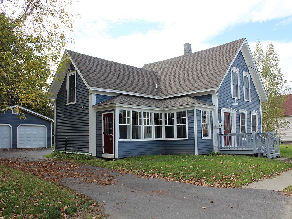 Charming 4-bedroom 2 bath VT Farmhouse duplex has stylish updates and timeless amenities. The first-floor unit features 2 spacious bedrooms, a full bath, an open concept floor plan which creates an inviting space, updated appliances and a separate private laundry area. Covered front and back porches add to the charm. The newly renovated upstairs unit offers 2 bedrooms, a full bath, separate private laundry space + new; appliances, carpeting and flooring. Additional amenities include; backyard space, detached two-car garage, paved driveway with off-street parking and a new roof. Both units have separate electric meters. Conveniently located an easy 10-minute drive to Jay Peak Resort for skiing, biking and hiking. Property offers you the opportunity to live in your own home and receive rental income or the possible option to turn this home back into a single family. Don't miss out on this opportunity - a real must-see property!