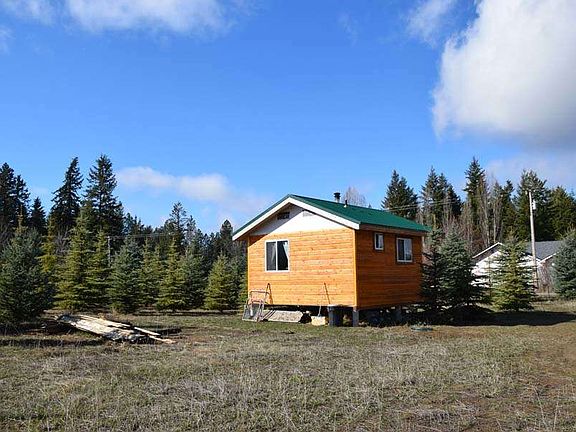 Cute TINY HOUSE terrific country setting, unlimited possibilities. Brand new 256 sq. ft. 1 room cabin situated on a scenic .80 acre lot in a peaceful rural setting. Could be vacation get away, future guest suite, art studio or even workshop when you build your dream home here. Surveyed, level property with fantastic mountain views, several landscape quality trees on site + it's fenced on 3 sides. Private septic & City of Moyie water connected to cabin. Wood stove heat. Power & natural gas to property line. Quality built with fire resistant, eco friendly insulation (insulation to be complete, as well as flooring, prior to close), double pane vinyl windows, metal roofing & wood & shake exterior. Don't miss your chance, this is a unique property with lots of potential. Call today. 20160750 $56,000
