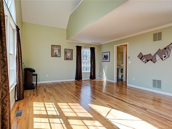 Rare opportunity! Exceptionally well maintained colonial half mile from historic Main Street Ridgefield! This custom home features a large sun lite living room with vaulted ceiling. Dining room with fireplace. Eat in kitchen with direct access to private patio. Upstairs features spacious master suite with full bath and 8x22 balcony loft overlooking living room ideal for study or relaxation. Second bedroom also has private bath. Lower level features a 13x14 heated room ideal for gym/playroom/man cave and access to two car garage. Hardwood floors throughout. Central air. Main level laundry. Patio. Stamped concrete driveway. House recently painted. A must see charmer!