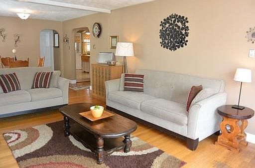 Excellent 7 room Ranch home, stylishly updated in BEST West Side Revere locale! This lovely bungalow offers a light & bright Living Room that opens to the spacious Dining Room. The updated eat-in granite & SS Kitchen has plenty of counter and cabinet space, and leads to the lovely deck overlooking the fenced-in back yard. There are 3 nice Bedrooms, including a brand new Nursery, and the Master has his & her closets. The walk-out lower level is very well finished as a Family Room with Office area & boasts fresh carpet. This move-in ready house also offers beautiful wood floors, a 1 car garage with electric door opener, vinyl siding, 100 amp electric, thermal windows throughout, new roof (2012), and full alarm system. This house offers an excellent commuter locale with great highway access & the 111 Bus to Haymarket at the end of the street. Area amenities include the BLUE LINE and and of course beautiful Revere Beach. Great house - don't miss out!