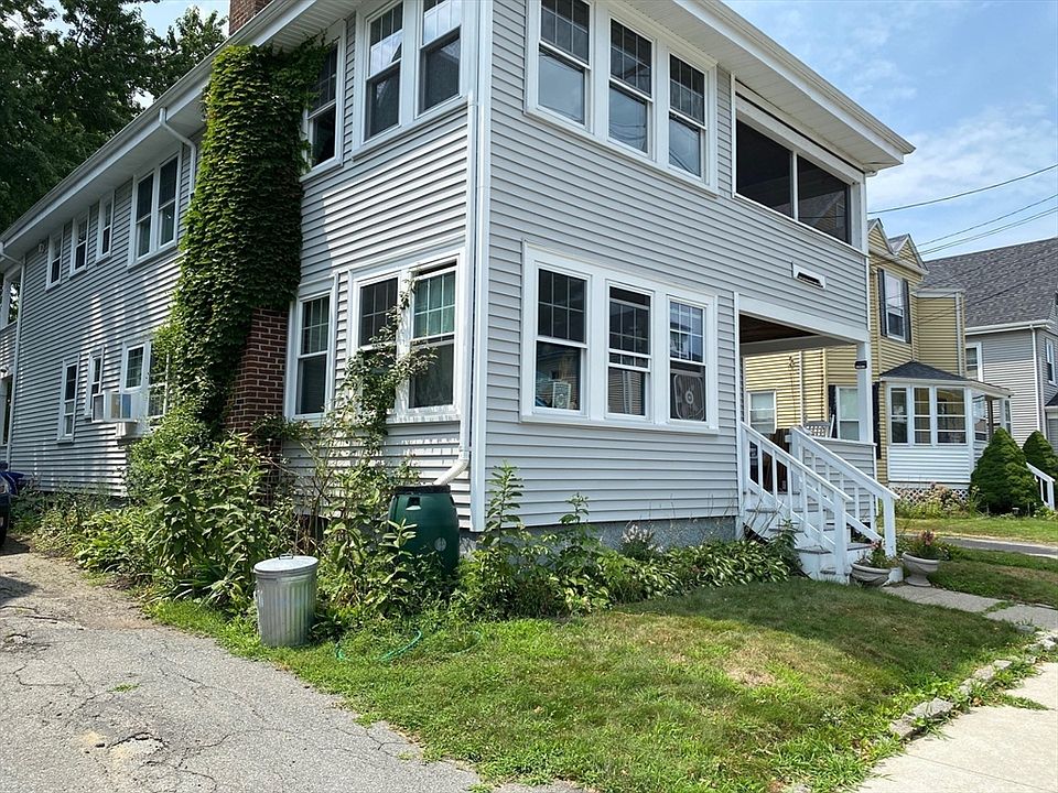 Rare Three Bedroom Condo conveniently located for commuting to Boston and near shops and restaurants. Covered front porch leads to inviting front sunroom. Fire Placed living room is open to the Dining room all with hardwood floors. The kitchen has a Pantry and updated cabinets and Gas stove. There is a Washer and Dryer and two Chest Freezers in the basement in addition to a large storage area. Domestic Cats are welcome. Unit also offers a back covered porch. The Backyard Shed is shared with the second floor owners. No showings until after the public open house. All best and highest offers should be e-mailed to the listing broker by 5 pm on Monday September 16, 2024.