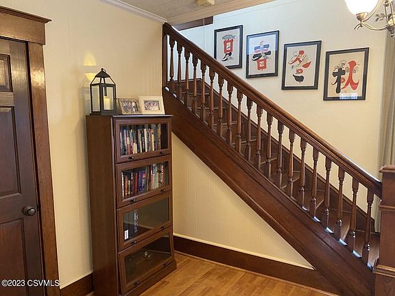Enter this 1920s home in the grand foyer with open staircase. Spacious dining room allows a large table, hutch, and space for other furniture.