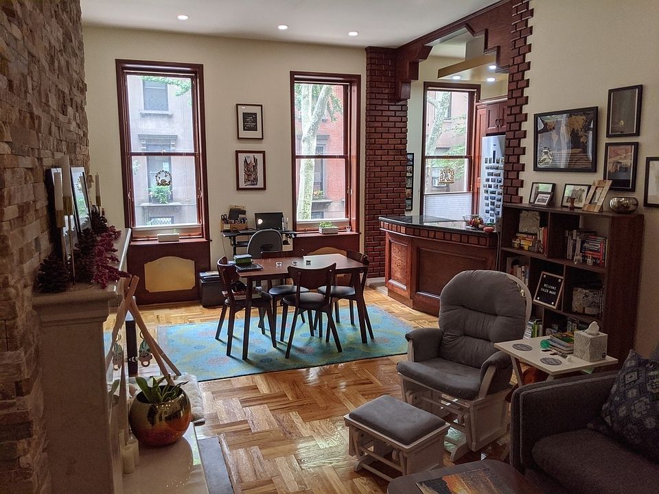 Lux 1 bedroom parlour floor apartment in brownstone building with tons of sunlight. Located on the second floor with an elevator / 1 flight walk up. Its newly renovated while keeping a lot of the original charming details. This spacious apartment has a large living room with a real wood working fireplace with marble mantle. The kitchen is fully equipped with stainless steel appliances, granite counter tops, an in-unit washer and dryer, dishwasher, and slow-close cabinets. The bathroom is newly renovated as well with a full sized tub laced out in marble from ceiling to floor. The bedroom can easily fit a king sized bed and then some with 3 closets. Hardwood flooring throughout with large windows. It's located 1/2 a block from The Promenade on a quiet dead end block. Close to shopping, markets, gym, cafes and transportation. July 15 Move In First month, security and one month fee Please contact Dorothea Geraci to view
