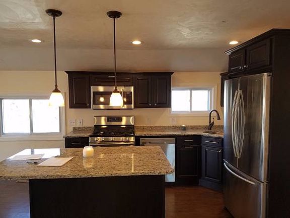 Located on a quiet dead end street with lake views. This 2 bedroom home underwent a complete gut renovation and remodel in 2016. Renovations included new vinyl siding, all new windows, new roofing, new gas furnace and central AC with NEST Smart WiFi enabled thermostat, new water heater, new electric and plumbing systems, new espresso maple kitchen cabinets with stainless steel appliances and granite countertops, kitchen island with pullout drawers, new bathroom, and much more! Additionally the house was converted to a more modern open floor plan layout featuring lake views from the living room, kitchen, and rear deck. Other amenities include detached garage, large back yard, all rooms are pre-wired for cable, recessed lighting with dimmers, and washer/dryer hookups.