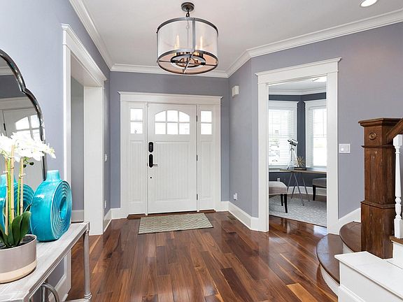 This beautifully renovated home offers a lifestyle of convenience. Centrally located w easy access to the Train, Shops & Restaurants as well as Bruce Park. Tastefully renovated w todays modern appliances & fixtures while still holding the charm from its original structure. The spacious front porch welcomes all who enter & leads into the Main open floor plan with space to entertain in the Kitchen, Dining, & Living Room. The large deck & fenced in backyard are gracious extensions of the home. The 2nd level offers 3 BR's, highlighted by a stunning master suite w/ a luxuriously updated bath & double walk in closets. 3rd Floor offers a 4th BR (not incl on tax card) w ability to add a full bath (plumbing in attic space). The lower level offers a bonus Room for Play/Fitness - LL included in sq/f