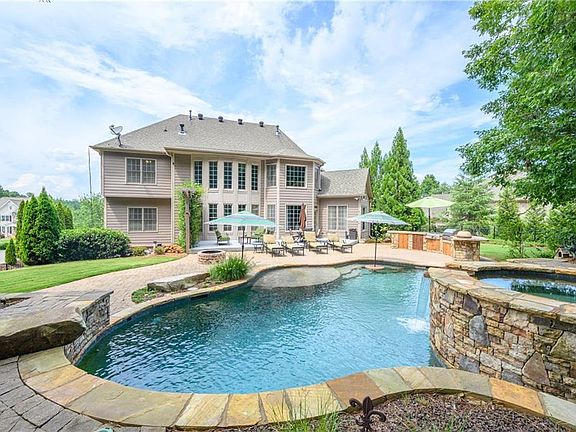 Have you always wanted your own private backyard resort? Look no further! Nothing was overlooked here, from the custom designed gunite pool with attached hot tub, to the firepit, and the outdoor kitchen with a dedicated Natural Gas line for the built-in gas grill; and yet still plenty of unused yard for your kids, pets, or cornhole. This home has the most wanted floorplan in The Estates; with a chef-style kitchen and extra-large island that is fully open to the fireside Keeping Room. The Family Room offers a second fireplace with the 2-story wall-of-windows.