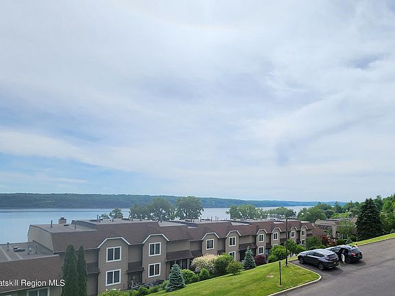 Meticulously maintained waterfront condo in Riverview Complex. Thoughtful modernization, opening up the kitchen to the view & adding a breakfast bar, as well as a walk in closet and office area. Sit in your living room, dining area or on your own personal deck and overlook the majestic Hudson River with outstanding views from this upper level unit. Hardwood floors throughout. Living room offers a fireplace for those cozy nights, newer kitchen with granite counter tops. Large and spacious primary bedroom with its own bathroom and extended walk in closet. Jacuzzi type tub. Den/office area on the main level. Full basement on lower level with a walk in closet which is cedar lined, two additional closets and one of those is cedar lined as well, one car garage, extra storage. Close to the hamlet or Port Ewen, City of Kingston, boating, train and bus station. Complex has an in-ground pool & pickleball courts. Short distance to George Freer Memorial Park w/playground & picnic tables