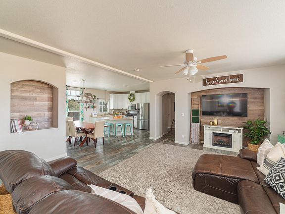 This home is GORGEOUS! Walk in and feel the happiness of a home, well kept, surround you! You are invited in by a large living and dining area with amazing natural light and classy grey flooring as well as a shiplap wall with floating shelves to surround you in character! From there you stumble upon the farmhouse kitchen with a large cupboard for storage and an island, allowing for more counter space. The master bedroom, secluded to one side of the home boasts a large attached bathroom complete with tub, shower, water closet, double vanity and a walk-in closet. The home sits on just under 1 acre barricaded behind a block wall and artificial grass. Some extra features include the garden and root cellar!