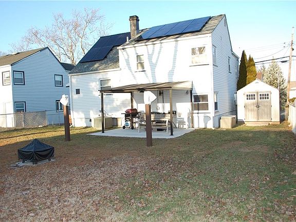 Welcome to this wonderful neighborhood! Great location for commuters but all the comfort of suburban living. Eat in kitchen has updated stainless steel appliance package. Large Bay Window and Hardwood flooring. Central Air Conditioning. Finished basement for additional living space. Wonderful fenced in level yard with concrete patio equipped with gazebo that includes screens, electric , ceiling fan and even TV hook up! Post are for hammock. Roof is less than 5 yrs old and Solar panels on backside significantly help with electricity costs. Upstairs bedroom is custom drawing/paint on walls that can easily be painted over if not your taste :) Close to major highways, shopping and public transportation.