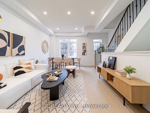 Fully renovated and move-in ready, this residence is situated in the vibrant and sought-after community of North York. Featuring a modernminimalist design, this bright and spacious south-north facing unit offers nearly 2,000 sqft. of thoughtfully planned living space, filled withabundant natural sunlight on every level. The open-concept living and dining area showcases 9-ft ceilings. The sunlit eat-in kitchen overlooks aprivate, tranquil backyard and has been fully upgraded with clean white cabinetry and brand-new quartz countertops, offering a fresh andtimeless aesthetic. The home is finished with light-toned engineered hardwood flooring, and the stairs and railings have all been newly replaced,contributing to a cohesive and modern feel. The main floor powder room features a sleek floating vanity, while the second-floor bathroom hasbeen fully renovated with large-format glossy tiles, a floating vanity with an LED mirror, and a glass-enclosed shower creating a bright and refinedspace. The primary ensuite is a luxurious retreat, complete with a freestanding bathtub, double floating vanities, dual LED mirrors, and recessedspotlights for enhanced brightness and comfort. The four-bedroom layout includes well-proportioned bedrooms, a convenient second-floorlaundry room, and a versatile third-floor family room or home office also suitable as a fourth bedroom with private balcony access. Stylishcomfort and exceptional attention to detail are evident throughout. Located just steps from the Edithvale Community Centre, parks, shops,restaurants, and transit, this home offers a rare blend of modern design, everyday practicality, and urban convenience.