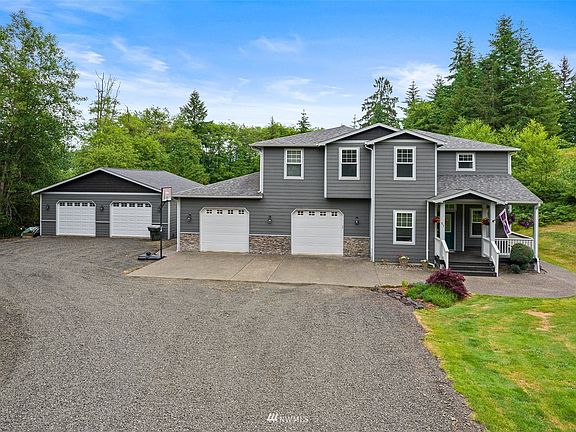 Almost 2 acres, surrounded by trees, providing seclusion & luxury! Ample parking w/ attached & detached garages, plus long drive. Covered porch leads into main level w/ 2 living rooms, 1/2 bath, & office. Grand kitchen w/ ample storage, dining space, island, wine storage, stainless appliances & large walk in pantry. Giant utility room w/ storage. French doors leads to primary bedroom w/ ensuite including soaking tub, double vanity & walk in closet. Second level boast a loft area, 3 bedrooms & full bath. The backyard is an entertainer's dream w/ pool, fire pit, & patio. Property is walking distance to school, close to rails of trails & has creek frontage. Detached garage has potential bonus room. On demand hot water.