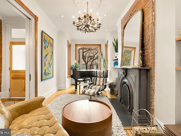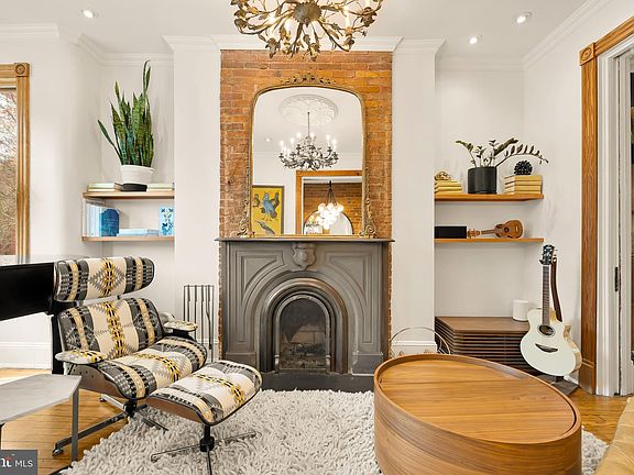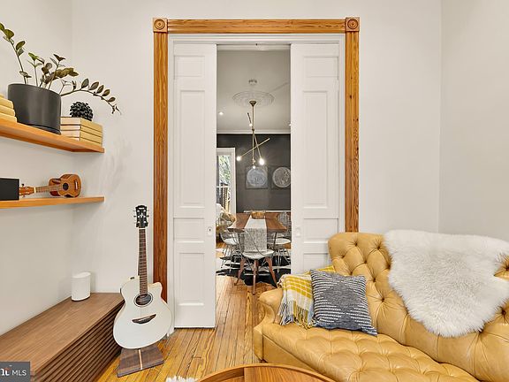 Welcome to 51 S St NW, a one-of-a-kind renovation in historic Bloomingdale. Originally built in the late 19th century, this residence seamlessly blends historic charm with modern luxury across four beautifully curated levels, offering 4 bedrooms and 4.5 bathrooms over 3,000 square feet of finished living space. The living and dining areas on the main floor have been thoughtfully restored and enhanced by the owners—cleverly designed to conceal ductwork, ensuring a sleek, modern aesthetic without unsightly soffits. Original plaster walls in these spaces preserve the home’s historic integrity, complemented by beautifully reclaimed heart pine flooring. Two wood-burning fireplaces, located in the living and dining rooms, feature salvaged slate and marble mantels from Washington, D.C. homes. The original pocket doors have been fully restored. Over the dining table hangs a handcrafted chandelier by Velora Lighting. The gourmet kitchen is a chef’s dream, featuring custom BERTCH cabinetry in a bespoke "Lagoon" hue, reclaimed heart pine floors, and top-of-the-line stainless steel appliances. Floor-to-ceiling glass doors open to a deck—ideal for outdoor dining or grilling. A thoughtfully added powder room includes a unique industrial mirror salvaged from NYC’s Atomic Factory and custom lighting by DLdesignworks. The second floor features two spacious bedrooms and two full bathrooms. The front bedroom serves as a secondary primary suite, with reclaimed hardwood flooring, warm exposed brick walls, and abundant natural light through a bay window. A walk-through closet with an organization system leads to an en-suite bathroom. The rear bedroom includes custom built-in wardrobes by Castle Cabinetry and opens to a covered terrace overlooking the beautifully landscaped backyard. Both bathrooms on this level are outfitted with curated encaustic tile, wall-mounted Villeroy & Boch toilets, and custom cabinetry. Additional features include hidden hallway storage & stackable laundry for added convenience. The third-floor primary suite is a true retreat, featuring a cedar-clad private deck, a custom Kolbe greenhouse window nook, and Nanawall folding doors that create a seamless indoor-outdoor experience. The spa-inspired primary bath showcases a floating walnut vanity, floor-to-ceiling marble, honed granite dual sinks, and brass lighting by Velora Lighting. Attached is a full dressing room by Castle Cabinetry. The fully excavated and finished garden level serves as a luxurious, multi-functional space—perfect for a guest suite, office, or entertainment area. The open-concept living area features engineered hickory flooring, exposed brick, polished concrete, and a striking custom brass Sputnik light fixture. A custom bar includes a marble backsplash, built-in pet kennels that convert to storage, a wine chiller, sink, and brass lighting. A hidden sliding door reveals a private guest suite with a built-in queen bed, full kitchen, and spa-like bathroom featuring green Zia encaustic tile. NanaWall doors fully open to the backyard, seamlessly connecting indoor and outdoor living. The exterior of this home is a private urban sanctuary. The backyard is beautifully landscaped with mature hornbeam trees, hydrangeas, and greenery that attract fireflies in summer. The front yard is equally stunning, featuring spring bulbs, butterfly bushes, and a mature pink dogwood tree. Decks and railings are constructed of cedar with custom ironwork by Axel Iron. The property also includes a roll-up garage door, EV charging station, and hidden backyard storage shed. Additional updates include a new sump pump and drainage system, and a full slate mansard and turret roof with a 130+ year lifespan, backed by a Maggio Roofing warranty. Smart, sustainable features include whole-house audio, Ethernet, tankless water heaters, and insulated commercial-grade windows, offering historic charm and cutting-edge design in a truly rare D.C. residence.
