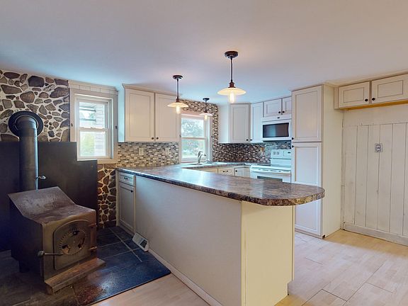 Nestled at the end of a dead-end street, this 4-bedroom home offers a blend of comfort and relaxation. The main floor boasts a spacious bedroom with an en suite and large walk-in closet. With 2 ½ baths, an updated kitchen, and abundant built-ins, functionality meets style. A cold storage room in the basement adds convenience. An oversized 2-car garage with high ceilings houses a wood stove-equipped room above, offering versatility and tons of storage options. The private backyard spans over ½ an acre, and heating options abound. Enjoy tranquility and accessibility with road frontage on Mason and Sargent Ave. Don't miss this opportunity - schedule a showing today!