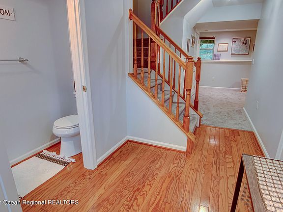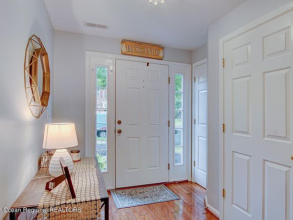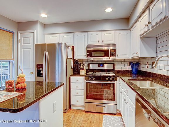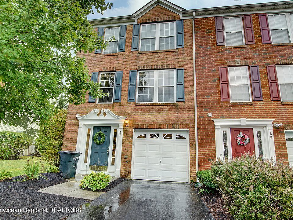 Spacious 3 bed / 2.5 bath End Unit townhouse in very desirable Farmingdale location with 3 levels of finished living areas plus an attached garage. Main entry level features spacious foyer, family room / flex room (possible 4th bedroom) laundry and half bath. 2nd level offers wood flooring throughout living room, dining room and kitchen with granite counters, Stainless appliances and center island. French-style door opens to spacious private deck with lovely view of wooded area. 3rd level has 3 bedrooms, vaulted ceilings and 2 full baths. Community offers playground and tennis court. Close to GSP, 18, 195 and 15 min to Spring Lake & Belmar beaches.