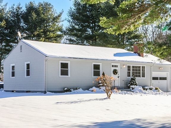 Come home for the holidays! It will be love at first sight when you see this beautiful ranch with so much charm & curb appeal nestled in a wonderful East Longmeadow location near the CT line! Summer living will be an absolute pleasure with a patio & a large .57 acre lot offering a very private back yard & an above ground pool! This lovely home has a great floor plan with a spacious living room w/ a bright & sunny picture window & cozy fireplace open to the dining room - just perfect for entertaining! The bathroom was stylishly remodeled in 2020 & the interior of the home has been freshly painted throughout! The basement adds lots of additional living space with two large finished rooms w/ plush wall to wall carpeting.! This home was originally built as a 3 bedroom & could very easily be converted back if needed at an approximate cost of $1500. Additional features include gleaming hardwood floors, many replacement windows, an attached garage and economical gas heat & gas for cooking!