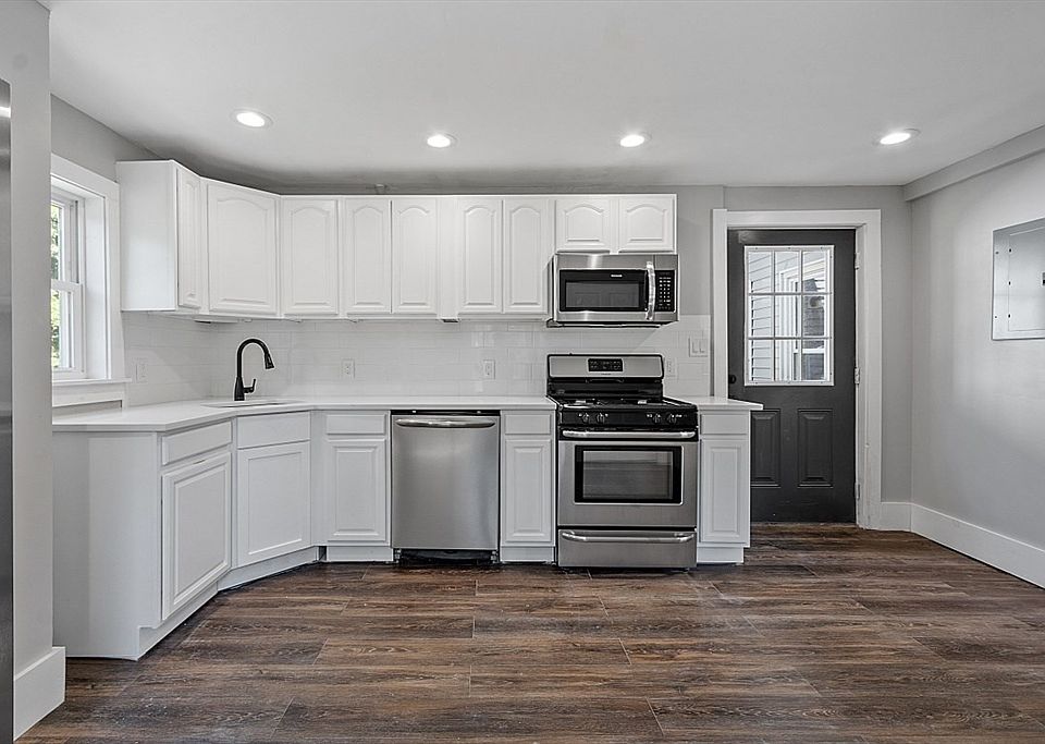 FHA Approved! Completely renovated in 2024, this open floorplan 3 Bed/2.5 Bath highlights a modern kitchen with high-end appliances, quartz countertops and plenty of space. First floor also includes a large sun-filled living room alongside a small bedroom or home office. Second Floor boasts a Master Suite with walk-in closet and spectacular Master Bathroom. 2nd Bedroom is bright and spacious steps away from another full bathroom. New high efficiency mini split AC/Heat Pumps installed throughout. The large yard is peaceful and meticulously maintained. Short drive to route 495 and Mass Pike make this a perfect option for commuter or remote employee. Don’t miss this stunning and stylish opportunity to own in prime Upton location. One garage spot included with unit!