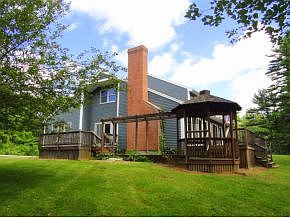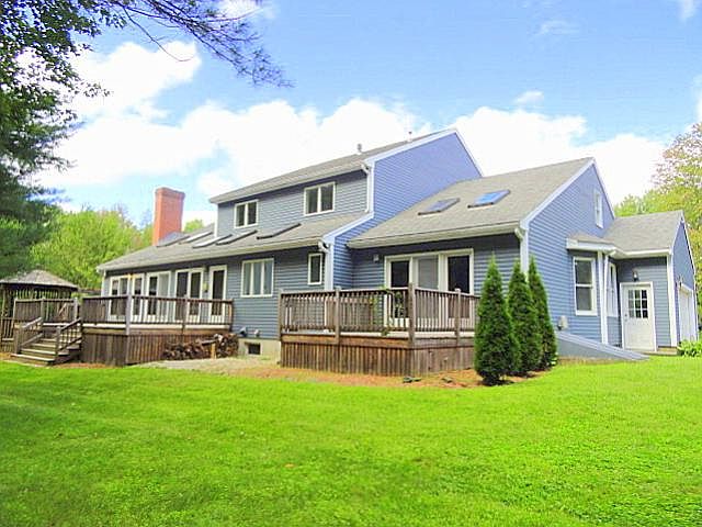 Outstanding value! Solid 10-room custom built home on almost 3 acres. Skylights maximize the sun's rays along the south side of the house, & the stunning fieldstone fireplace w/ a heatilator will keep you toasty all winter. A wall of French doors off the kitchen & family room showcase the peaceful natural setting & wraparound decks & gazebo. The main level is ideal for entertaining with formal & contemporary spaces & open floor plan. You'll also enjoy a generous Master suite w/ a walk-in closet & jacuzzi, lg laundry room & a den. Upstairs, you'll find 3 bedrooms plus a bonus room- perfect for a study/office or playroom, & lg full bath. The dry basement has high ceilings & a wood stove hook-up;you can expand your living space even further if you want to! This unique home is part of the beautiful Lyford Glen subdivision, yet tucked away for peace & privacy. Excellent commuting location, close to Rte 125 and 101.