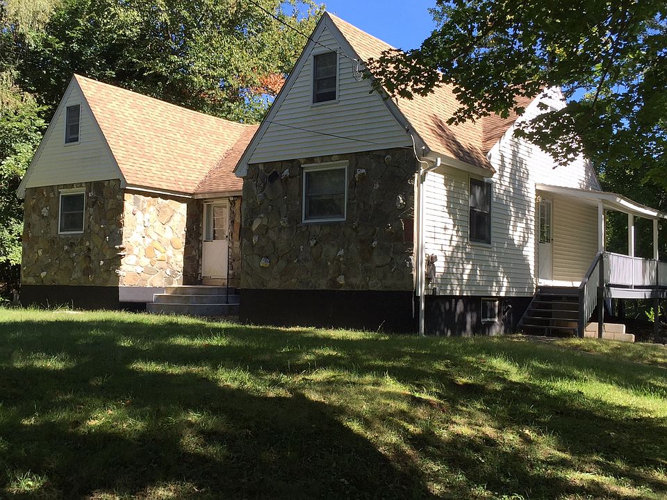 Beautiful & very private one floor living on 8.95 acres with 2 wonderful ponds. Front to back living rm/fireplace, has coffered ceiling & hardwood floors. Country kitchen with new ceramic floor. New bath. Big Dining room w/hardwood that opens to wraparound covered deck looking over pond. 2 good size bedrooms w/hardwood. Walkup unfinished 2nd floor. Updated roof. New electric. Magnificent chestnut and tulip trees. This is a real treasure setting. Commuter location, but Very private!