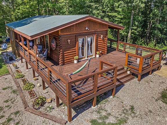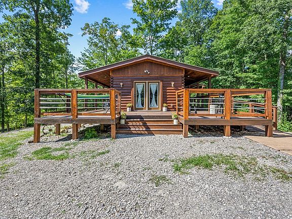 This peaceful log cabin is nestled in a wooded setting on 3.24 acres m/l, in Woodsdale Est.You'll find the cabin very inviting, and selling FURNISHED! This 2 bed 1 bath home has an open floor plan, laminate flooring, vinyl windows, both electric and propane heat options and bath/laundry combo with recently updated walk in shower. Enjoy the sights and sounds of the country while sitting on the front or back covered porches. Enjoy the sunshine while sitting on the open deck. This home has something for everyone to enjoy! For the cool evenings, enjoy some time relaxing around the custom fire pit. The property offers a one car detached garage and a concrete pad for RV parking with a 30 amp service. While you'll feel like your miles away from the hustle and bustle of life, you are only 7 mi. from downtown Albany and only minutes from both Dale Hollow Lake and Lake Cumberland. Whether you are in the market for a full-time or vacation home or investment property, this property is a real find!