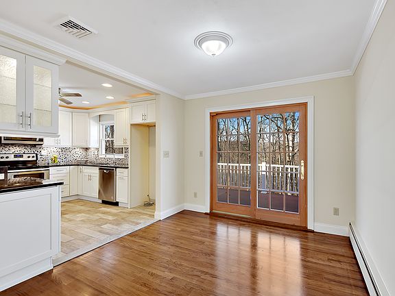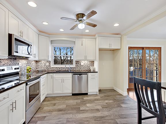 So many options available with this multi-family home privately set on just under 1.5 acre in the desirable neighborhood "Spruce Knolls". Brand new gorgeous kitchen upstairs with granite counters, tiled backsplash, tiled "wood look" flooring. Dining area with sliders to large trex deck & stairs down to your private back yard. Living room with classic brick fireplace, beautiful bay window & built-in entertainment area. Hardwood floors throughout main floor, stylish wainscoting, central air & all freshly painted. Custom entry with tiled flooring & architectural window. Main bath has magnificent walk-in shower & separate tub. Master bedroom w/master bath. 2 Linen closets. Lower Level offers 2 bedrooms, full bath, Eat-in-Kitchen w/door to back yard, Living Room with door to back yard. Huge Laundry Room, Pantry & 1 Car Garage. Large Shed 16x16. Enjoy the Town Park, Senior Center, Parks & Recreation etc. Just under an hour to NYC...it is the best of both worlds.