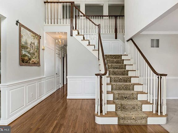 - InteriorFeatures: Kitchen Island, Window Treatments, Pantry, Recessed Lighting, Walk-In Closet(s), Built-Ins, Eat-in Kitchen, Crown Molding, Carpet, Wood Floors, Butlers Pantry, Wainscotting, Master Bath(s), Breakfast Area, Upgraded Countertops, Kitchen - Gourmet, Family Room Off Kitchen, Chair Railings, Double/Dual Staircase, Stall Shower, Wine Storage, Tub Shower, Additional Stairway