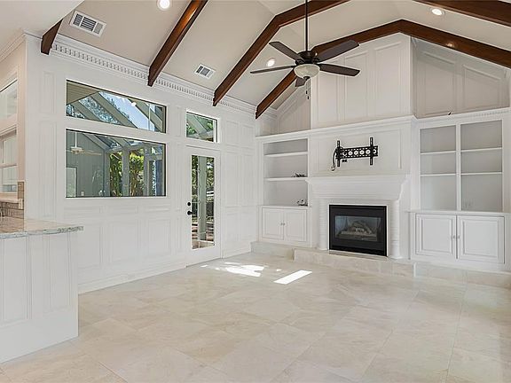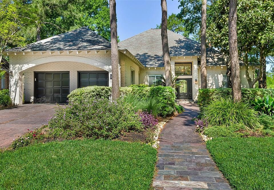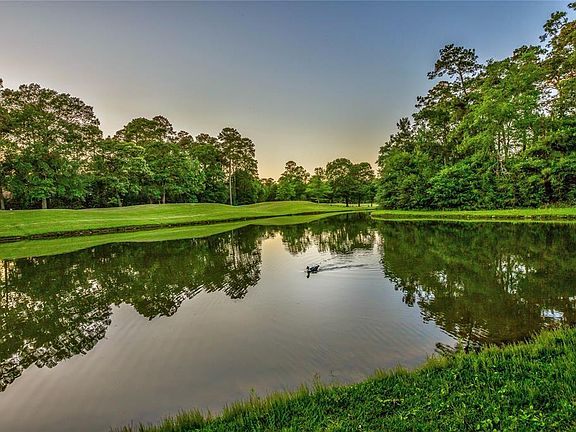 WATER VIEW - NEWLY RENOVATED 1-story backs to the 3rd hole of the Palmer General course. Custom Tom Cox beauty is ready for move-in! Light, bright & modern updates include formal living/dining; open concept kitchen & den, ventilated greenhouse/sun room; master & guest suite down w/optional study. Highlights freshly painted interior & exterior, gorgeous mill-work, updated hardware, lighting & plumbing, modern finishes, Nest Thermostats & automated smart sprinkler system. All new flooring: solid wood, new Travertine & carpet. Kitchen features brand new SS appliances, dry bar & beverage cooler, new counter tops. Beautiful paneled walls, accent beams & updated baths, master bath w/cedar closet! Upstairs 2 suites/optional game room; climate controlled storage w/build out option. Beautiful balcony views of the pond and golf course! A spacious backyard is home to a large patio w/extended cover, water feature and lush gardens, a true retreat in the heart of The Woodlands. Never flooded!