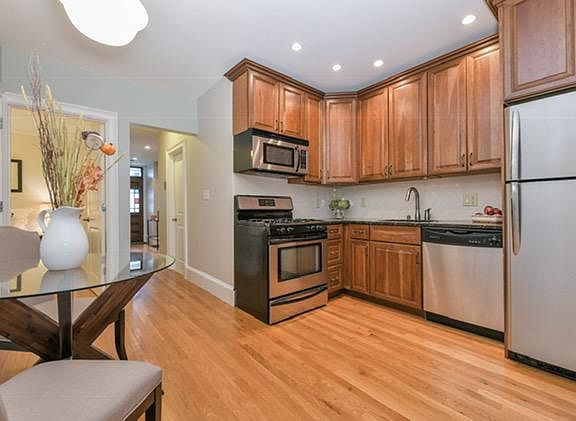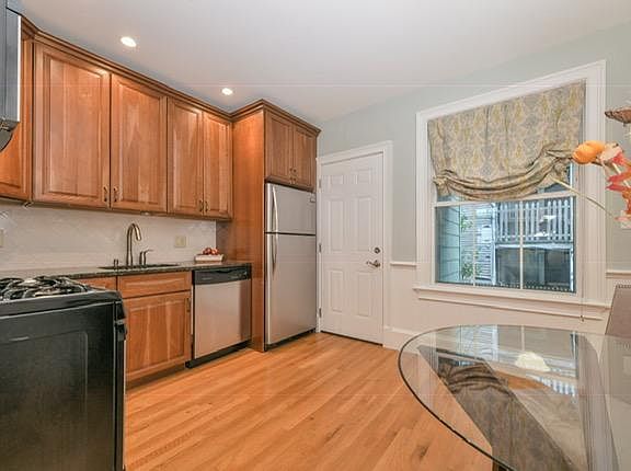 Traditional styling and details characterize this immaculate condo. Features include hardwood floors, elaborate moldings throughout, including crown in both bedrooms, HVAC, in-unit laundry, 2 well proportioned bedrooms, eat-in-kitchen with granite & stainless appliances. Large, seeded outdoor patio can either be a zen, urban garden oasis or host those epic spring/summer & fall BBQ gatherings. Come & go anytime with ease through your own private front entry. Large, deeded basement storage room. Uniquely situated in the East Side of Boston s coveted Thomas Park neighborhood. Walk to BOTH East and West side attractions, including Lincoln, CAPO, Loco, Cafe Nero. Stroll around Thomas Park Monument after dinner to enjoy cityscape views & Boston Harbor.
