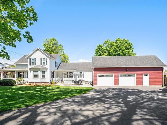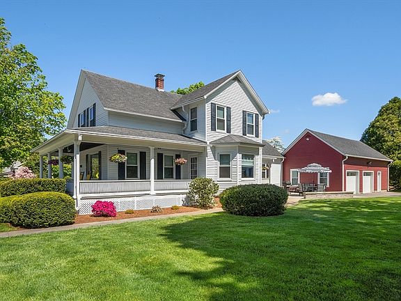 A meticulously renovated farmhouse in the heart of Deerfield. With 4 bedrooms, 1.5 baths spread over 1911 square feet, this home offers ample space for both relaxation and entertainment. Completely remodeled bathrooms and the kitchen features quartz countertops, stainless steel appliances, an island, tile floor and a large pantry. Step onto the charming porches, retreat to the stone patio illuminated by soft lights, perfect for evening gatherings or follow the stone path to the gazebo to enjoy the scenic views. Perfect for outdoors dining. The oversized garage with hot and cold running water provides plenty of storage for cars and more. An unfinished room above the garage is just waiting to be finished to add more living space. Every detail has been thoughtfully considered, from all new heating system, Trex porch decks, refinished hardwood floors, gutters, mini splits, hot water heater, plumbing, electrical to the freshly paved driveway, energy efficient windows and insulation!