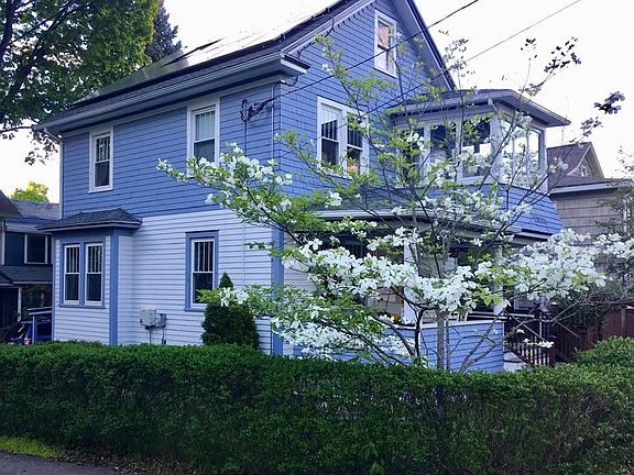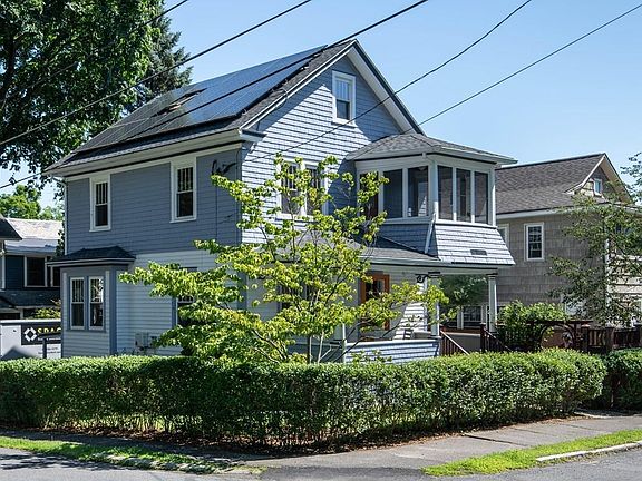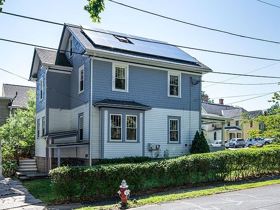 Sweet country house in the city! Classic arts and crafts 4-square. Steps away from downtown and Smith College, with unbeatable access to the bike path, this in-town home checks all the boxes. Sit on the covered front porch swing or have your morning coffee upstairs in the second floor screened-in porch. With a south-facing exposure, your outside time is extended. Inside you are enveloped in the warmth and authenticity of a lovely, well-kept old home. Beautiful woodwork, French doors and wood floors with a modern bent in all the right places. Updated kitchen and renovated third floor from one of the top design build contractors in Northampton. Efficient on-demand hot water heater, direct-vent boiler, recent insulated roof and roof-top solar to take care of all your electric needs. Outside you will find a Goshen stone driveway and fully fenced yard with blueberries, strawberries, raspberries, service berries and perennial landscaping.