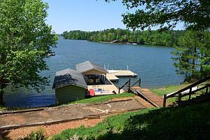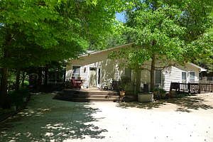 AMAZING WESTERN SUNSET VIEWS!Deep beautiful lake at docks.Lovingly-cared-for 1-level w/BIG open floorplan,vaulted ceiling,grand rooms.Windows across lakeside.Generous concrete parking,2-car garage w/storage.Shady&tranquil.Wonderful SUNROOM is cherry on top!Screen porch/cookhouse,deck,porch.Space for ALL your summer guests!Dock,BIG floating dock,boathouse w/winch,covered wetslip is SOOOO NICE!There are plans available for an attached garage and another master suite if buyer is interested.