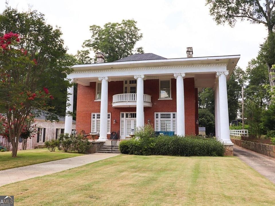 Let this elegant turn of the century Greek Revival home provide grand spaces and effable touches of modernity that elevate your daily routine. Saunter down the front lawn as the home welcomes you with its Ionic columns and brick fa?ade. Enter through the French doors with beveled glass panes into the large and open front living area featuring coffered ceilings with carven beams and inlaid hardwood flooring that continues throughout the first floor. A fireplace mantle in the main living area sparkles as inset gray marble with crystalline veining dances in sunlight beaming through myriad windows. Amenities on the main level include a true chef's kitchen with medium stained cabinetry, granite countertops, multi eye gas range and oven as well as a separate butler's pantry with its own countertop and separate shelving. Relax or start your day at the coffee/wine bar area with stone countertops. Additional office space or separate TV room, walkout side porch with ramp and enclosed back porch complete the main floor. Upstairs you will find a central hallway with arched passthrough leading to four additional bedrooms each with their own full bathroom for a total of five bedrooms and five bathrooms, extra storage space and an exterior balcony with wrought iron railings. Exterior features include a pool, fenced in backyard, and finished one bedroom/one-bathroom separate guest house with screened in porch (646 square feet). Buildable lot included in sale and has its own driveway! Schedule your showing today!