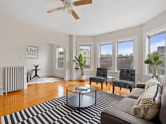 Sun-splashed spacious unit in ideal location near Assembly! Commuters will love the buses to Sullivan Square, the Orange Line and the new Green Line coming soon! Ideal layout in the unit with an eat-in kitchen with pantry, dining room and living room with a reading nook. Bedrooms are spaced at opposite ends of the unit. Enjoy your own private outdoor rear deck and a uniquely spacious storage unit! 1-car parking assigned space and laundry in-unit. Unfortunately, we are not holding an open house, only private showings. Kindly limit your showing to 15 minutes as a courtesy to the next showing. See link for Matterport floor plan tour. Parking space in right rear of lot, parallel to rear fence (as you look from the street). Pets under 30 lbs and 16" in height permitted.