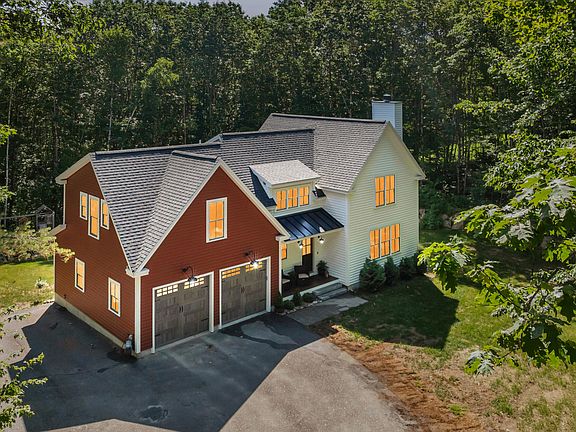 This exquisite custom farmhouse, recently built by MGM Builders & nestled at 51 Tenny Hill Rd, Raymond located in the heart of the Lakes Region. As you approach, you'll be greeted by a charming front porch, an ideal spot to enjoy your morning coffee amidst nature. Step inside to discover a thoughtfully designed mudroom, accessible from the spacious two-car garage, featuring custom-built storage for ultimate organization alongside a convenient half bathroom w/ granite countertops. The heart of this home is an expansive open-concept dining room & kitchen, perfect for hosting gatherings w/ family and friends. The kitchen is a culinary dream, boasting granite leather-finish live edge countertops, rustic cherry custom cabinets, & high-end black smudge-proof stainless steel appliances, including a double oven and a dishwasher seamlessly integrated into the cabinetry. Convenient pantry w/ custom shelving, power for countertop appliances & storage is located just off the kitchen. The generously sized living room provides ample space for relaxation, complete with a stone wood burning fireplace & built-in shelves. Open the sliding glass door & enter the beautiful composite built deck overlooking the private back yard and patio space complete with a firepit and dining area. Upstairs, the luxurious primary suite awaits, featuring a walk-in closet and a private bathroom adorned w/ granite live edge countertops and a custom oversized tile shower. Two additional guest bedrooms w/ large closets, a full bathroom with bathtub/shower, quartz countertops, & an office/flex space with a skylight complete the second floor. Heat pumps throughout, perfect for heating & cooling any time of year. Generator hook up, full walkout daylight basement w/ epoxy finished floor & plenty of storage. Located on a dead end public road w/ beautiful homes surrounding. Only minutes to Crescent Lake & more recreational areas. Pleasant Mountain 40 mins, shopping in Windham 20 mins, Jetport 35 mins away.