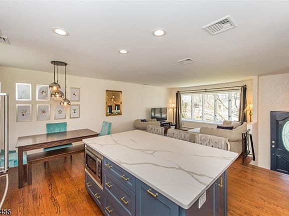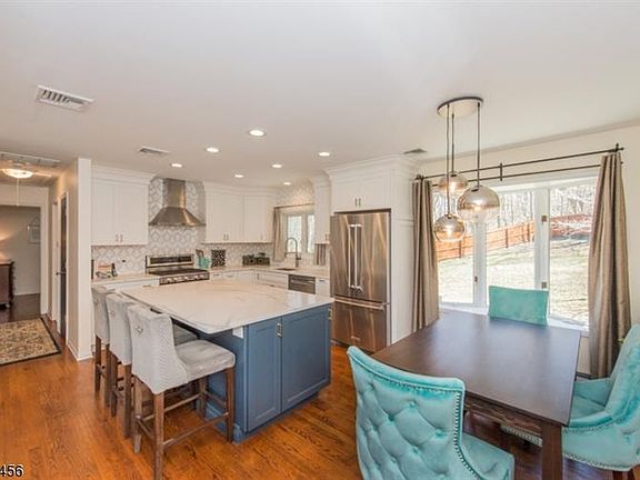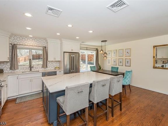 Expect to be impressed! Commuter's Dream, nearby Denville train station to NYC Hoboken, this total renovated 3 bdrm 2 full bath bilevel home is move in ready. Upgrades include open concept floor plan w kitchen LR DR combo. All walls were opened up. Modern kitchen w center island, white cabinets, stainless steel appl., recess lighting, custom backsplash quartz countertops, and hardwood floors. 1st fl offers 2 bdrms w closet organizers, renov full bath w double vanity and walk in shower, Ground level offers another bedroom, living room, engineered hdwd flrs, rec room den could be another bdrm. Renovated bath with single vanity w tub shower. Roth above grnd oil tank - 2016, windows (2007), roof (10 yrs old), vinyl siding with brick, 1.22 Acres of land, fenced in yard, and long driveway for up to 5 cars.