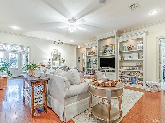 What a gem of a house! This home has so many extra details. Extra cabinetry includes built in bookcases in the primary bedroom, living room, dining room, and cabinets extend to the ceiling in the kitchen. There is also a large pantry in the kitchen. Current owner has taken wonderful care of the home. The back porch addition gives the home an entirely extra living area. Enjoy so many evenings in this quiet, private space. The guest bedrooms are separate from the primary bedroom. Large laundry with extra cabinetry. There is a tremendous amount of storage in this home. Roof 2021 and AC unit 2021.