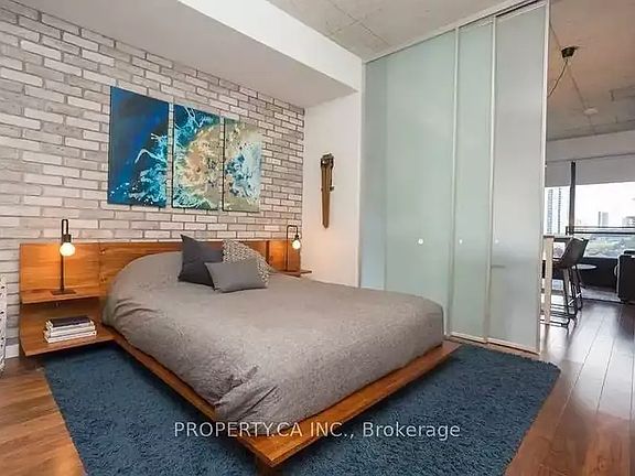 Welcome to a great urban living experience in trendy Corktown at River City! Impressive features like 9' concrete ceilings, a deluxe kitchen with stone counters & stainless steel appliances, floor-to-ceiling windows with an unobstructed north view & Juliette balcony, full 4-piece bath, large closets and a custom exposed brick bedroom feature wall. Walk to every amenity you could ask for including Canary Commons 18 acre park-oasis right next door, TTC, bike paths, downtown core, Leslieville shops + restaurants & the historic Distillery District.