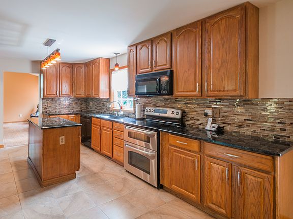 The best of both worlds-Neighborhood and Privacy blended together!! Spacious Colonial with 4 bedrooms and 2.5 baths backed by woods perfect for entertaining inside or out. Wide open floor plan throughout large recently updated eat in kitchen which hosts granite countertops, a mosaic tile backsplash, a breakfast bar that is open to the den, soft-close cabinets, newer appliances and sliders to the private two-tier deck with wooden canapé. Gleaming hardwood floors on main level and oversized formal dining room. Main level family room with vaulted ceilings and gas fireplace with granite hearth. Upper level bedrooms with wall to wall carpeting. Master bedroom features full luxury bath. Architectural roof, central ac, security system and shed!! This home will not last!!