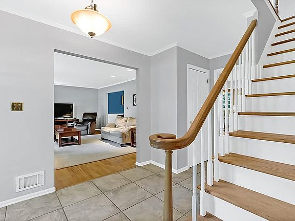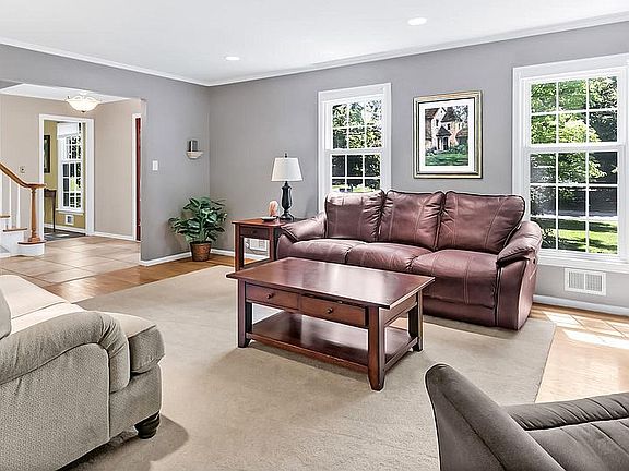 Situated in one of Basking Ridge's most coveted areas with tree lined streets, park nearby, and located in the heart of Basking Ridge on just under an acre, this home is brimming with curb appeal and space to enjoy the outdoors. You'll enjoy the seamless flow of this center hall colonial, with all rooms leading to the eat in kitchen. Hardwood floors, crown molding, recessed and pendant lighting, and double sliders to the deck bring warmth and style. Stainless steel appliances, granite countertops, and a center island are perfect for meal prep, serving, and informal dining. The dining room is ideal for more formal meals. The generously sized living room and family room are perfect for gatherings or relaxation. Four generously sized bedrooms include an ensuite master. The basement is finished! Add to this nationally recognized award winning schools, access to major thoroughfares, shopping, and a whole host of parks, pools, golf, equestrian facilities, farms, safety recognition from Niche.com nightlife and restaurants, safety awards from Niche.com including those in Morristown, and Basking Ridge is truly the place to live!