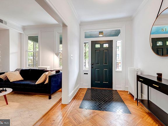 This classic Bloomingdale home offers a beautiful blend of old and new, and a yard that will make you forget you're living in the city! The main level features a basalt tile entry, original parquet hardwood floors, and a gorgeous mantle in the living room. The dining room is spacious enough for the largest of dinner parties, while the updated country-style kitchen comes complete with a new backsplash, quartz countertops, and a farmhouse sink. Upstairs, you'll find a newly renovated bathroom with clean marble tile and a rear-lit mirror, three large bedrooms, and a den off of the owner's room perfect for office, workout, or lounging space. The lower level in-law suite offers front and rear access, and the long backyard ends with a parking pad for two cars. As a bonus, the new owners of this home will inherit solar panels owned outright, and a *brand new* HVAC system! At just steps from Bloomingdale's charming neighborhood establishments - the Red Hen, Big Bear Cafe, Boundary Stone etc. - you won't want to miss this opportunity to live at 51 V Street NW!