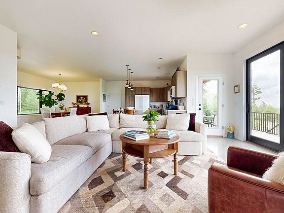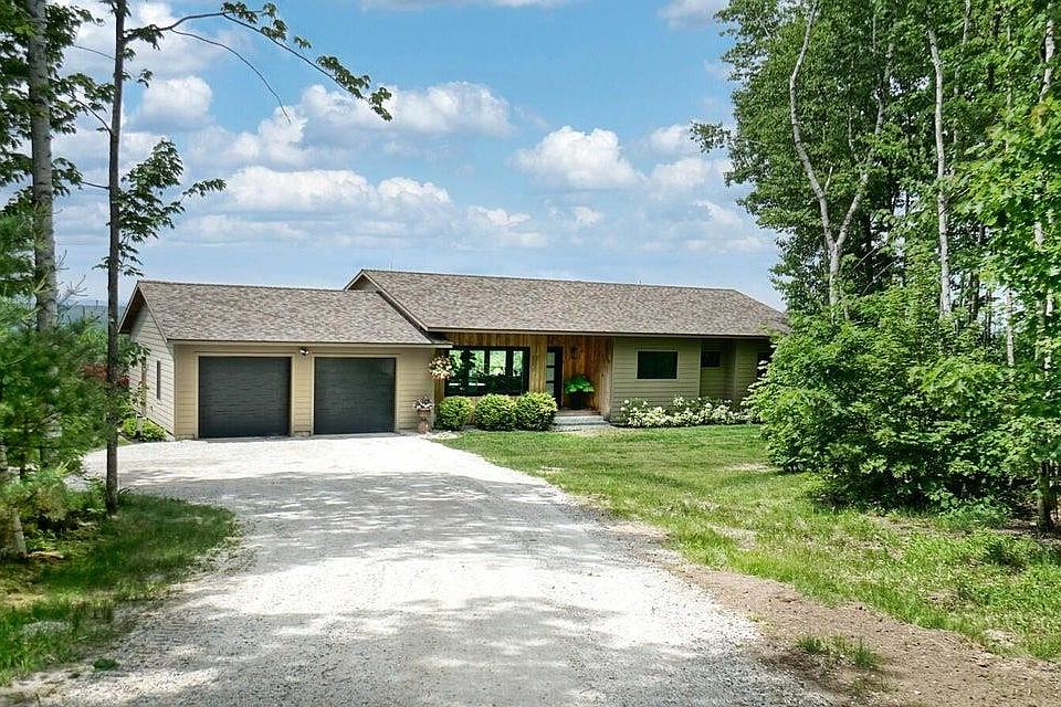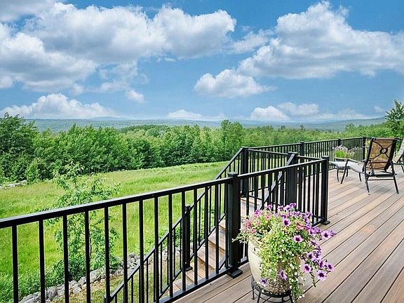 Stunning home located in the picturesque Town of Otisfield. Private 7.8 acres, approximately three of which are field, Superior Western Views including Mount Washington: glorious Sunsets and Moonlit nights. Before entering the home, you can look through the home to the mountains. Entering the house, you notice the floors are polished concrete and gorgeous. All floors on the main floor are radiant heat. Open concept with dining area to the left, continue walking toward the views of your high-end kitchen and living room with gas fireplace for those winter nights as you watch storms through your 9'x16' sliders onto your deck overlooking your lawn and field. From the living room, a bright hallway brings you to a full bathroom, laundry closet, and two bedrooms to the right (front of home). The master bedroom has sweeping mountain views, an ensuite full bath, and a walk-in closet with built-ins. Partial finished lower level Seller uses for an extra bedroom and den area, of course, with views. The home has an attached two-car garage with direct entry into the main floor and also direct entry into the lower level. Otisfield has hiking trails, nearby public beaches, boat launches, Thomson Lake, and Moose & Saturday Pond, which rank amongst the cleanest in Maine. Minutes from the home, one can fish Class A-rated Crooked River from the National Historic Register, Ryefield Bridge. Otisfield is a fun area to bike. There are many hills, blueberry fields, and valleys. Ski areas 30 to 40 min
