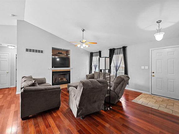 As you step onto the covered front porch, you'll be welcomed into a bright and airy great room, perfect for cozy evenings by the fireplace. The vaulted ceilings and open floor plan create an open, warm atmosphere. The kitchen features stainless steel appliances, while the spacious dining room is perfect for hosting friends and family with easy access to the back patio.