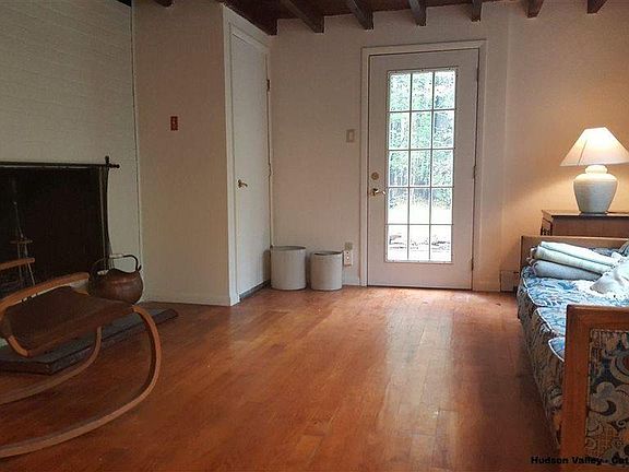 This is a Gorgeous Woodstock home nestled in the woods , very private and peaceful and only 5 minutes to Woodstock town center, and 90 minutes to NYC! Wood and stone mid-century fireplace, wood floors, vaulted ceiling, bluestone patio. First-floor bedroom can easily be used as office space and there's an adorable little dining space off the kitchen for casual mornings and lazy afternoons. At night curl up in the den-like family room by the fireplace with a good book or your favorite libation. The house has enough nooks and crannies to keep it interesting and gets really nice light, with plenty of entrances and exits to and from the house. A beautiful serene place surrounded by nature's tranquillity and fresh air. Flexible lease terms up to one year. Tenant pays all utilities
