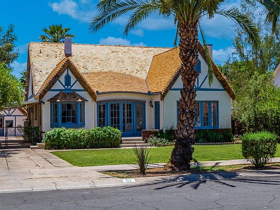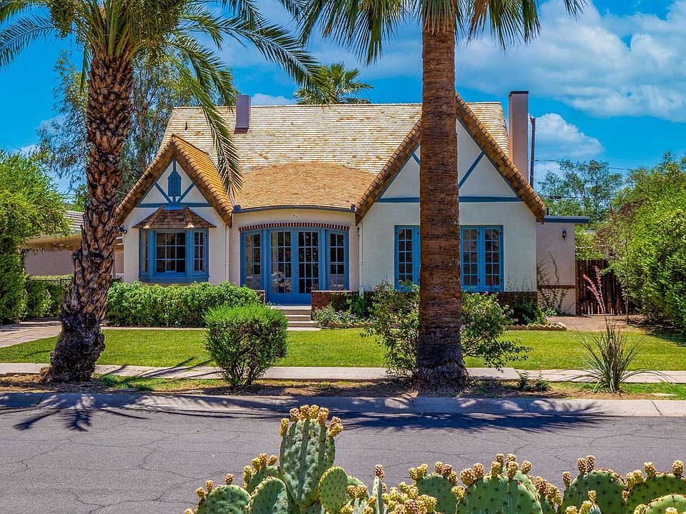 A Storybook Fairytale in a house! This incredibly unique Cotswald Revival cottage from the English Tudor family of architectural design comes to you from the heart of Willo, the largest and most cared for Historically designated neighborhood in Central Phoenix. Nestled near the end of a cul-de-sac on a well-maintained block walking distance to Central Ave, the hub of the lightrail, popular restaurants and cafes, this is as magical and convenient as historic Phoenix living gets! Note the brand new shake roof (warranty conveys), the diagonally-laid original hardwood oak flooring, the 9-foot plaster coved ceilings, art-deco era wall sconces, charming wood-burning fireplace, formal dining room, adorable and useful built-ins throughout, gas stove, original kitchen with charming eat-in,
